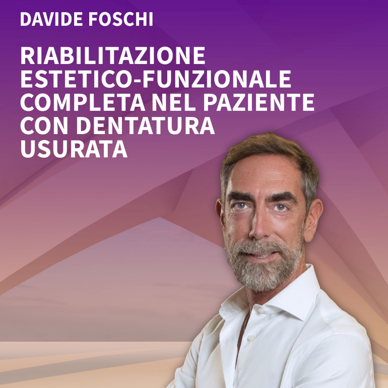 Il Dott. Davide Foschi, formatosi a Bologna e a Ginevra sotto la guida di illustri specialisti come i Prof. Pascal Magne, Urs Belser e la Dott.ssa Francesca Vailati, ha ideato la metodologia Speed-Up Therapy per affrontare in modo predicibile ed efficace i problemi conseguenti a erosione, bruxismo o usura. Grazie alla Speed-Up Therapy sarai in grado di riabilitare dentature compromesse in pochissimi appuntamenti grazie a rialzi della dimensione verticale, mock-up totali con chiavi in silicone, restauri adesivi diretti e indiretti parziali e una visione multidisciplinare che integra protesi, conservativa e ortodonzia. Saprai quindi applicare un approccio conservativo e additivo che combina rapidità e predicibilità e i cui principali vantaggi sono la conservazione dei tessuti dentali, il perfetto equilibrio tra funzione ed estetica e la significativa ottimizzazione dei tempi e costi del trattamento. Unisciti al Dott. Foschi e scopri come offrire ai tuoi pazienti un trattamento efficace, rapido e all’avanguardia!Riabilitazione estetico funzionale completa nel paziente con dentatura usurata