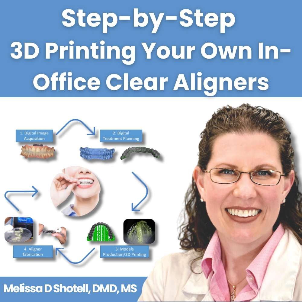 Additionally, this online course introduces in-office 3D printing techniques for creating your own branded aligners. Learn how to design and 3D print aligner cases, set up your cases (or outsource setup), vacuum form aligners, and deliver them to patients!